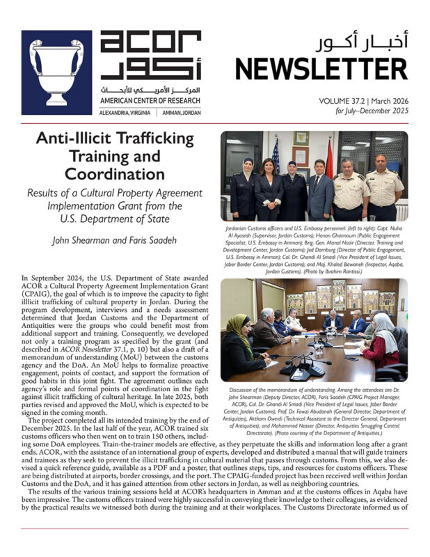 Here you will find Archaeology in Jordan (our biennial scholarly publication of field reports and project updates), Insights (our blog, featuring essays by fellows, other scholars, interns, and more), the semiannual ACOR Newsletter, and open-access digital versions of other publications.